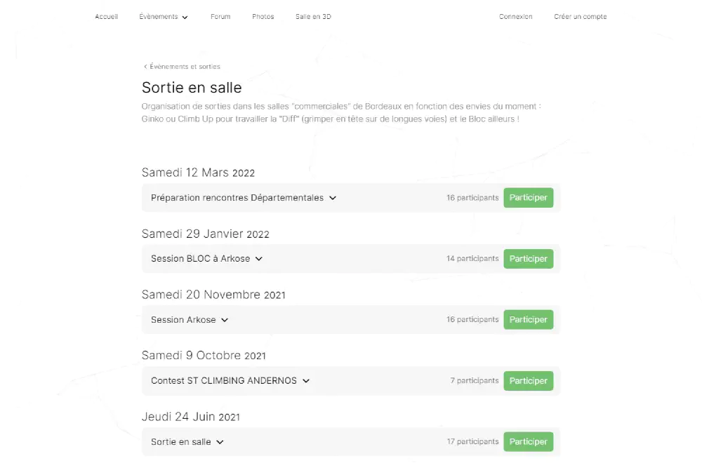 L’idée est d’avoir un site fonctionnel pour que la section escalade puisse organiser des sorties, des sessions au lycée et afficher les informations importantes.
