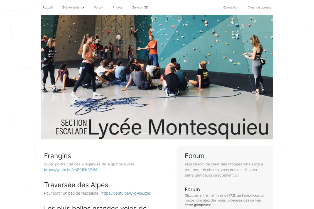 Site de l’AS Escalade du Lycée Montesquieu à Bordeaux.