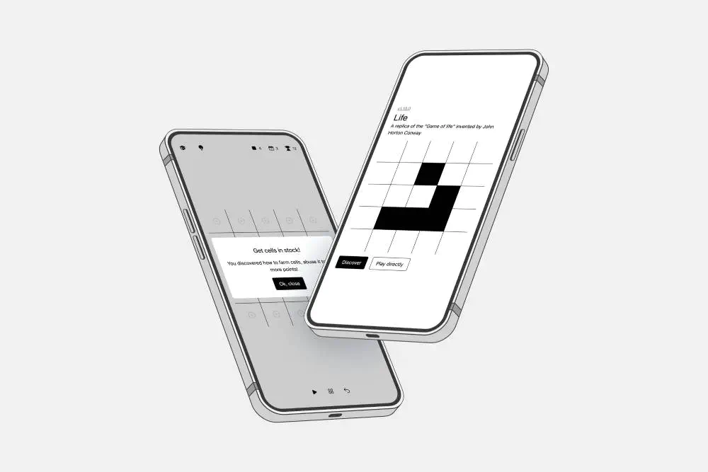 Alors je suis parti sur un jeu. En partie parce qu’un projet sans utilisateurs c’est un projet qui ne rapporte pas d’argent, qui n’a pas de retours et qui ne s’améliore pas. Je dois me confronter à des problématiques réelles, des évolutions qui n’émanent pas de moi. J’ai donc cherché à gamifier le jeu : j’ai ajouté une logique pour calculer un score, créé des tips pour informer le joueur au fur et à mesure (plutôt que le bombarder d’infos dès le début), etc. Certaines fonctionnalités sont passées, d’autres sont plus complexes (comme le “pokédex” de patterns de cellules).
